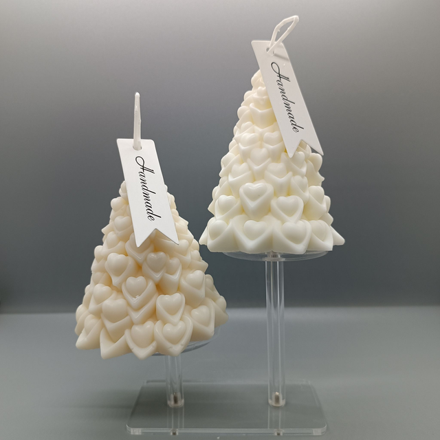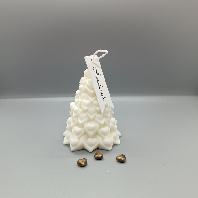 Diese liebevoll handgegossene Kerze aus reinem Naturwachs bringt festlichen Glanz und warme Gemütlichkeit in dein Zuhause. Ihre elegante Baumform mit kleinen Herzen macht sie zu einem besonderen Highlight in der Winter- und Weihnachtszeit.